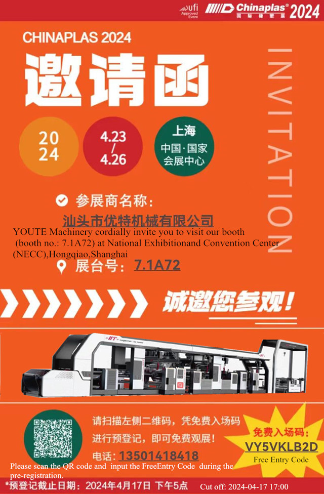 优特机械 与您相约2024年CHINAPLAS 国际橡塑展